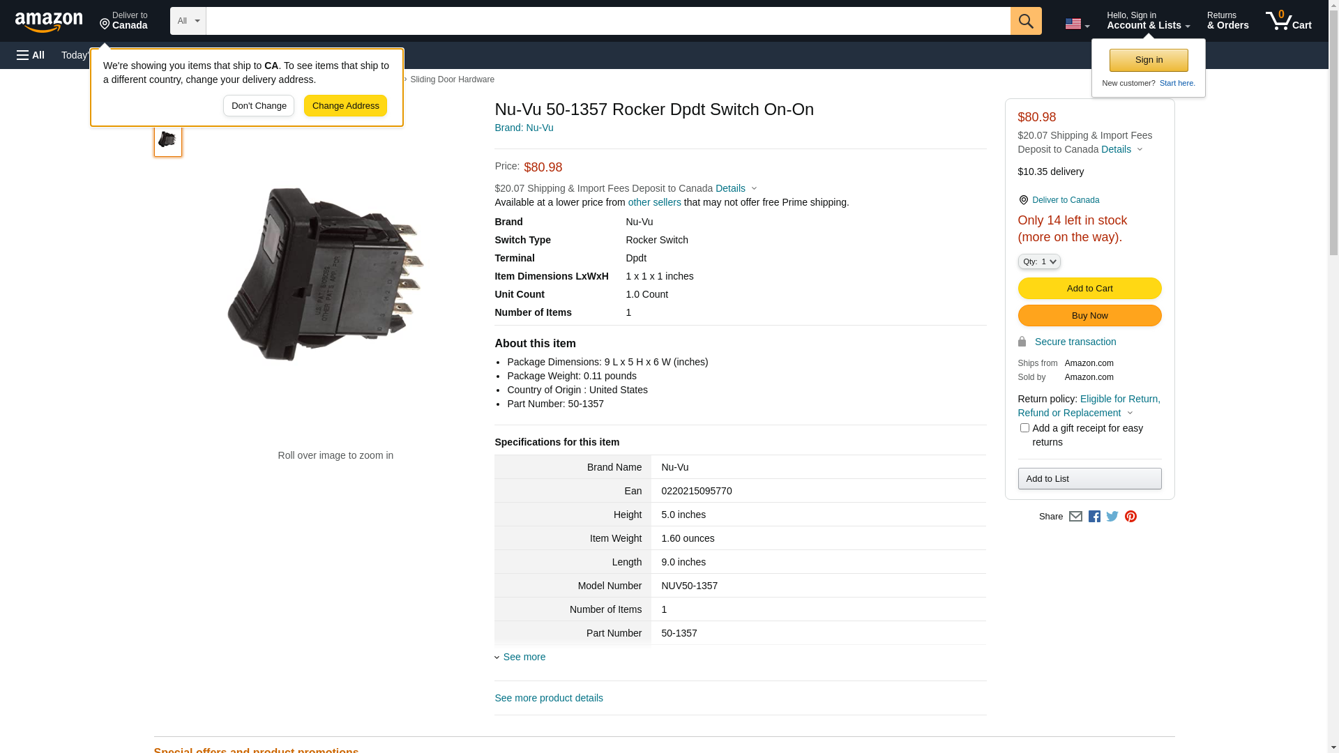 Nu-Vu 50-1357 Rocker Dpdt Switch On-On