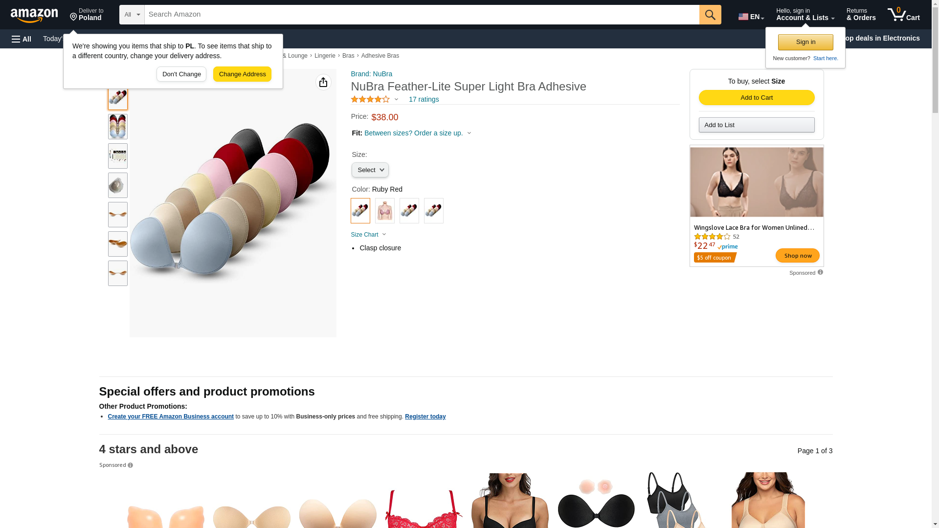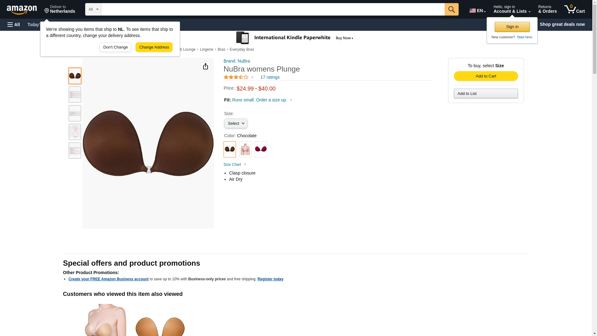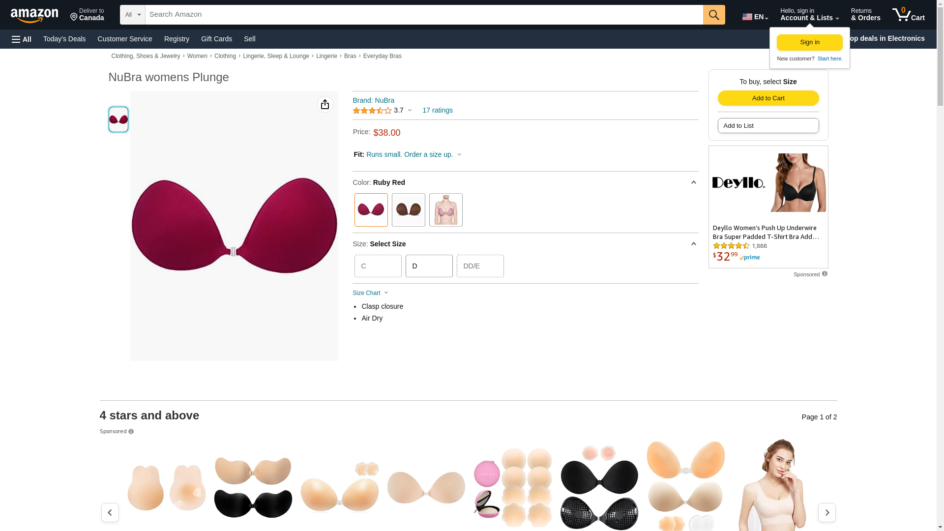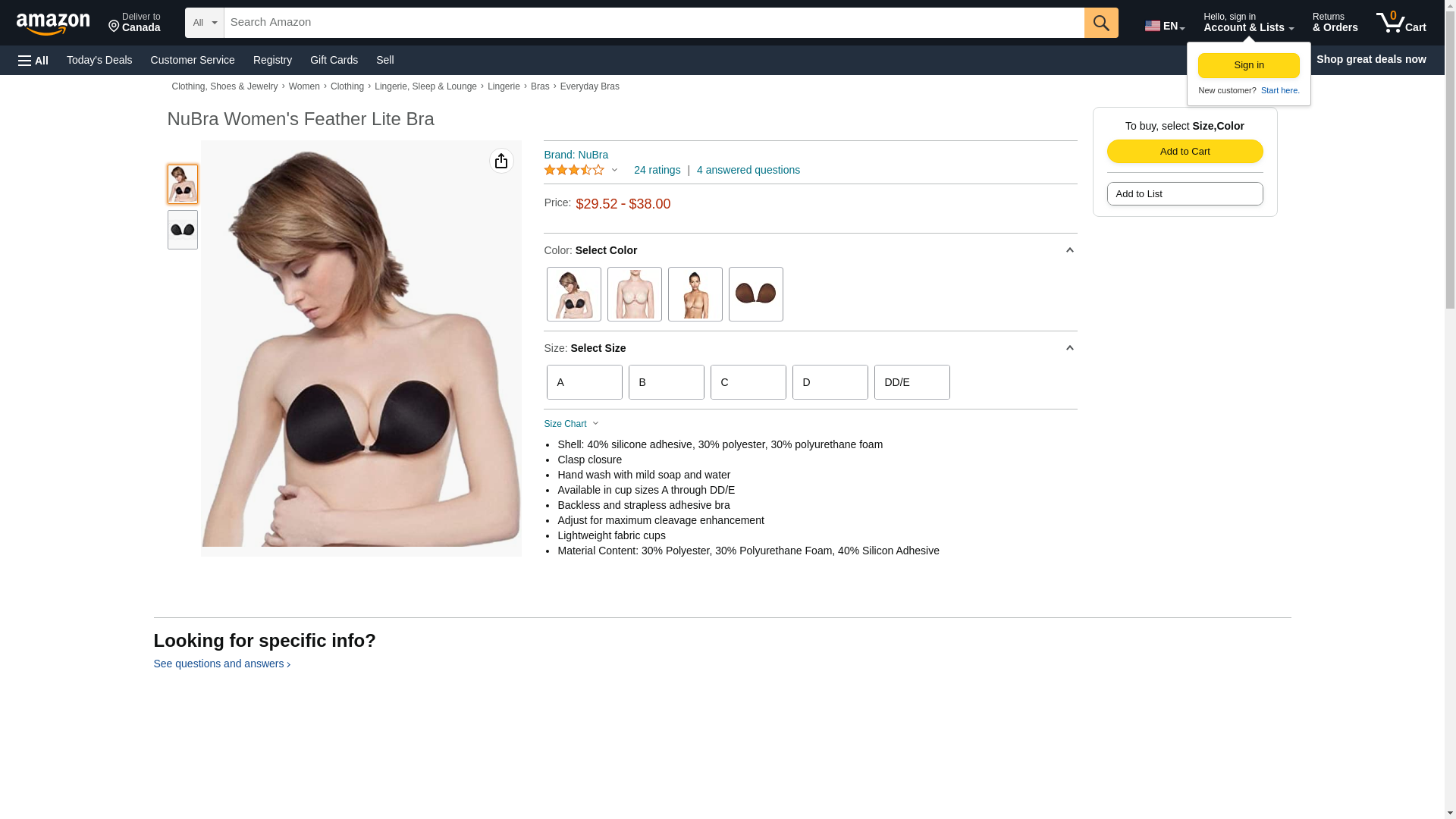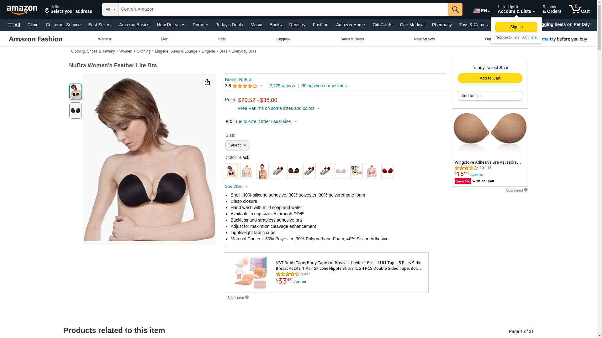 NuBra Feather-Lite Super Light Adhesive Bra F700The lightweight, versatile fabric cups are perfect for everyday wear with any outfit. The center clasp allows for adjustable cleavage enhancement and the skin-friendly silicone adhesive is comfortable and reusable. This bra is backless, strapless and does not require a band measurement.We suggest sizing your NuBra based on your current cup size. If you are between sizes, we recommend sizing down. The adhesive surface works best when in maximum contact with your breast. NuBras are not intended for full coverage, but can be positioned to provide support and cleavage control.How To WearClean your chest with mild soap and water and towel dry. Place one side at a time. In front of a mirror, take one bra cup carefully by the edges and set it to the desired position on your breast. It is best to place the cup on the outside of your breast with the clasp pointing to your belly button. Smooth the edges onto your breast, leaving 2 to 3 finger widths from the bottom. Connect the front clasp. With both hands on the bra cups, press firmly for a few seconds for a secure hold.How To CleanWash your NuBra after each use to remove any body oil or other products. DO NOT MACHINE WASH OR DRY. To clean, wet the adhesive surface with warm water. Add 2 or 3 drops of mild, non-moisturizing liquid soap. We recommend Nu Wash, our cleanser. Using your fingertips in a circular motion gently lather the soap. Avoid using your fingernails, as they can tear the adhesive. Use warm water to remove all residue. Shake off excess water and air dry completely. Do not use a towel or a blow dryer and do not machine dry.How To StoreWhen completely dry, place in original case to prevent dust from gathering on adhesive. Keep in a cool, dry place. Avoid direct sunlight. With proper care, your NuBra will last for many wears.