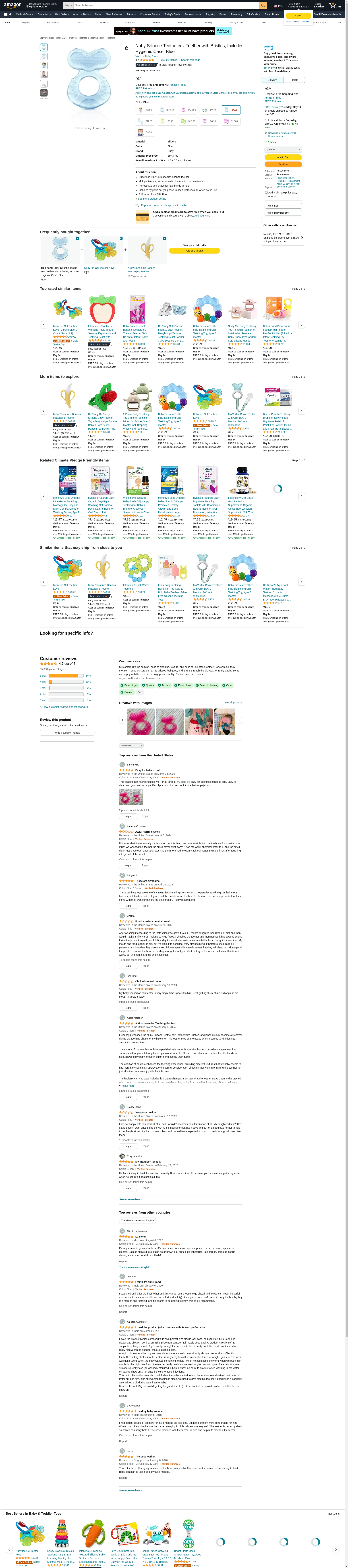 Nuby Silicone Teethe-eez Teether with Bristles, Includes Hygienic Case, Blue: Maxedbuy.com