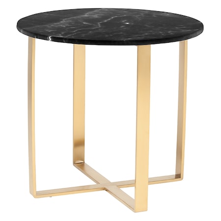 Nuevo Rosa Round Marble Top End Table in Gold and Black