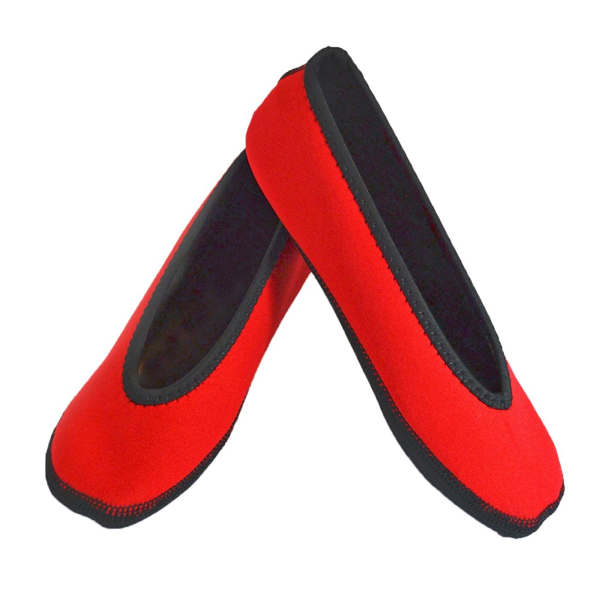 Nufoot Ballet Flats Women's Shoes, Foldable & Flexible Flats, Slipper Socks, Travel Slippers & Exercise Shoes, Dance Shoes, Yoga Socks, House Shoes, Indoor Slippers, Red, Medium