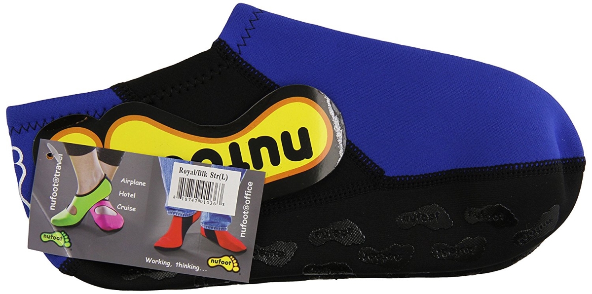 Nufoot Booties Men's Shoes, Foldable & Flexible Footwear, Fold and Go Travel Shoes, Yoga Socks, Indoor Shoes, Slippers, Royal with Black Stripe, Small