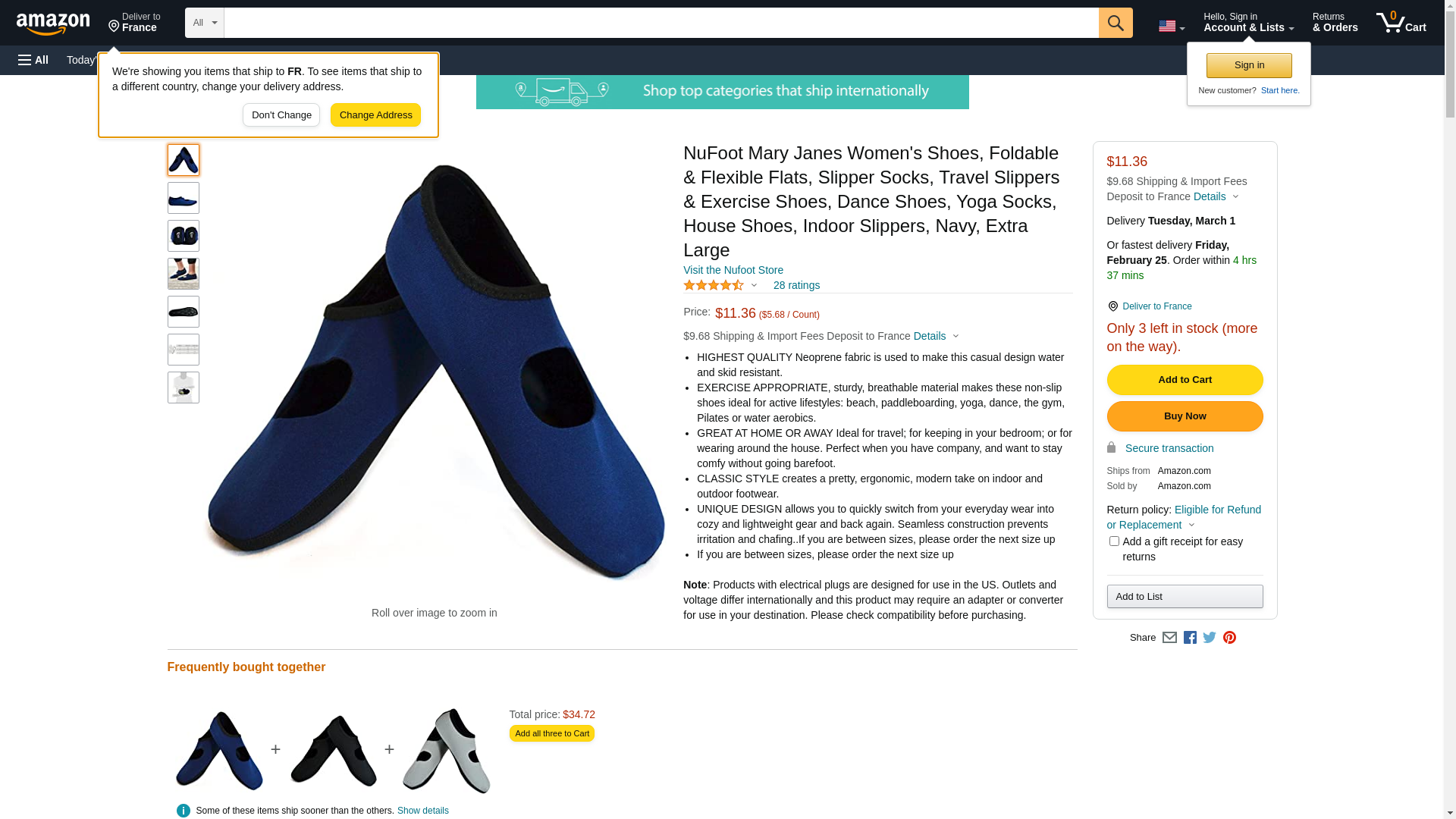 Nufoot Mary Janes Women's Shoes, Foldable & Flexible Flats, Slipper Socks, Travel Slippers & Exercise Shoes, Dance Shoes, Yoga Socks, House Shoes, Indoor Slippers, Navy, X-Large