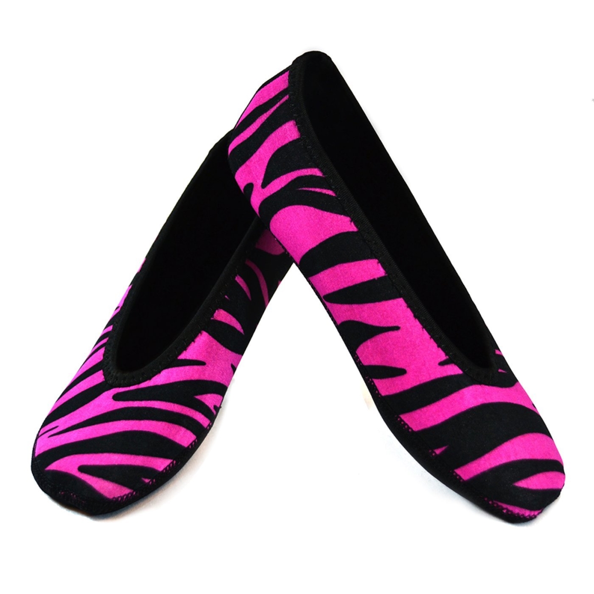 NuFoot Ballet Flats Women's Shoes, Foldable & Flexible Flats, Slipper Socks, Travel Slippers & Exercise Shoes, Dance Shoes, Yoga Socks, House Shoes, Indoor Slippers, Pink Zebra, Medium