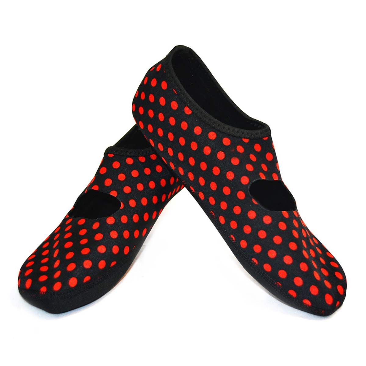 Nufoot Mary Janes Women's Exercise & Dance & House Shoes, Foldable & Flexible Flats, Indoor & Travel Slippers, Slipper & Yoga Socks, Black/Red Polka Dots, Large, W 7-10, 2 Count