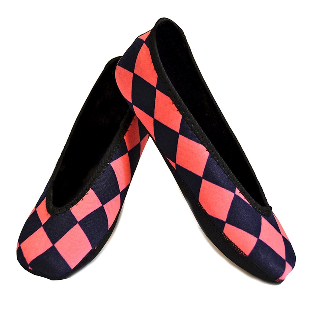 Nufoot 1496 Ballet Flats Womens Shoes Black With Pink Checkers Extra Large Fits Shoe Size 10-12