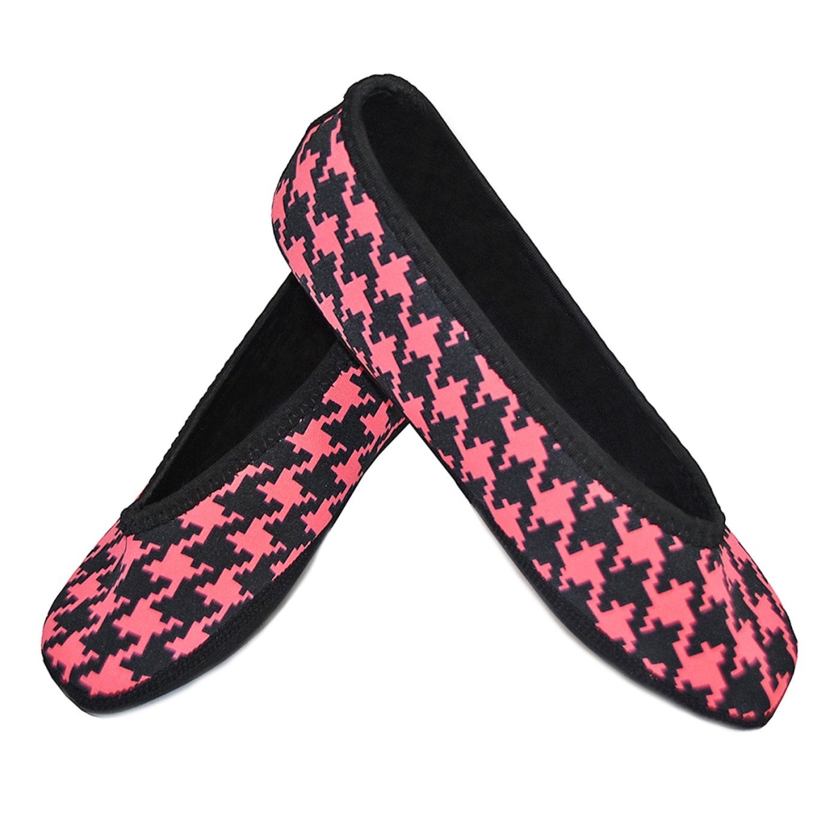 NuFoot Ballet Flats Women's Shoes Foldable & Flexible Flats Slipper Socks Travel Slippers & Exercise Shoes Dance Shoes Yoga Socks House Shoes Indoor Slippers Pink and Black Houndstooth Small