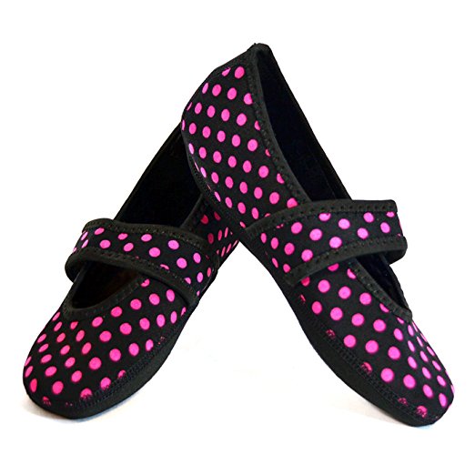 Nufoot Betsy Lou Women's Shoes, Foldable & Flexible Flats, Travel & Exercise Shoes, Dance Shoes, Yoga Socks, Indoor Shoes, Slippers, Black with Pink Polka Dots, Small