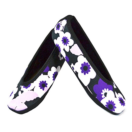 Nufoot Ballet Flats Women's Shoes, Foldable & Flexible Flats, Slipper Socks, Travel Slippers & Exercise Shoes, Dance Shoes, Yoga Socks, House Shoes, Indoor Slippers, Purple Flowers, X-Large
