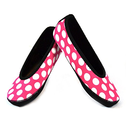 NuFoot Ballet Flats Women's Shoes, Foldable & Flexible Flats, Slipper Socks, Travel Slippers & Exercise Shoes, Dance Shoes, Yoga Socks, House Shoes, Indoor Slippers, Pink Dandie Dots, Small