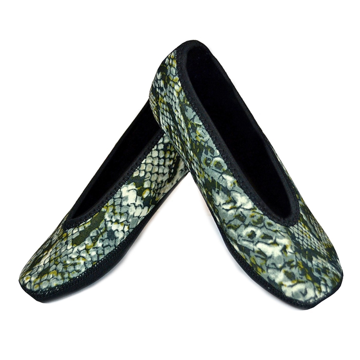 Nufoot Ballet Flats Women's Shoes, Foldable & Flexible Flats, Slipper Socks, Travel Slippers & Exercise Shoes, Dance Shoes, Yoga Socks, House Shoes, Indoor Slippers, Silver Snake, Medium