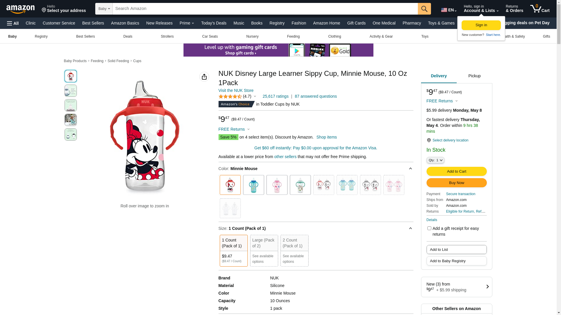 NUK Disney Large Learner Sippy Cup, Minnie Mouse, 10 Oz 1Pack: Maxedbuy.com