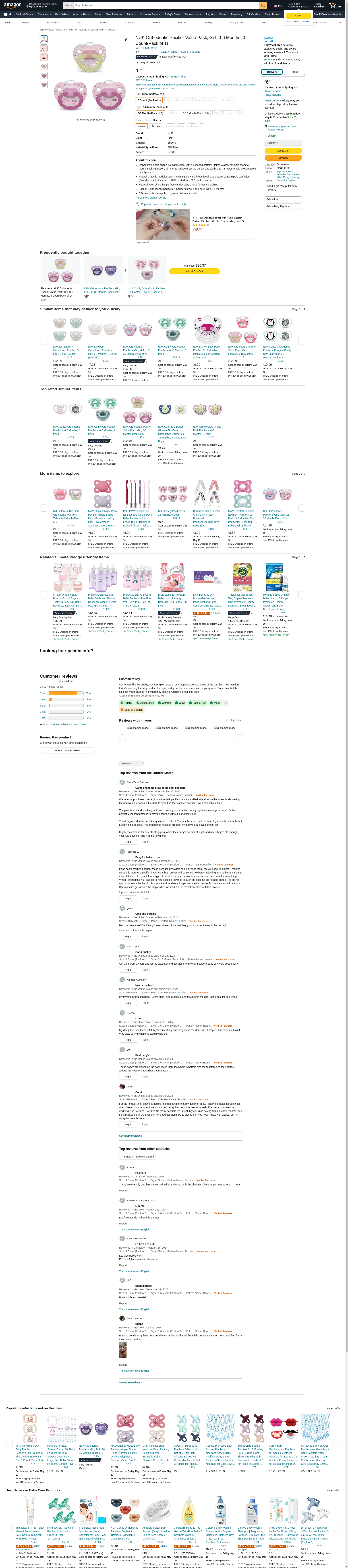 NUK Orthodontic Pacifier Value Pack, Girl, 0-6 Months, 3-Pack: Maxedbuy.com