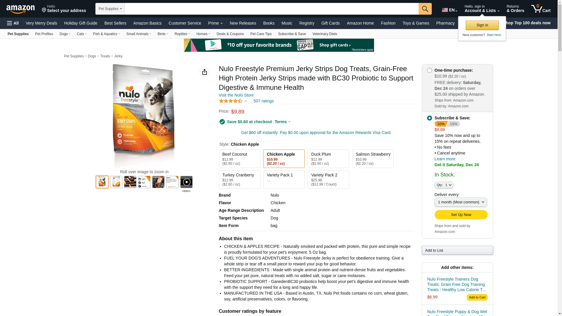 Nulo Puppy & Adult Freestyle Jerky Dog Strips: Natural Healthy Real Meat Grain Free Dog Treats For Training Or Reward (Chicken With Apples Recipe - 5 Oz Bag): Maxedbuy.com