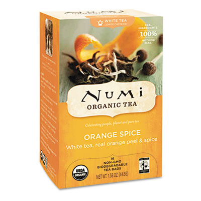 Numi Organic Teas and Teasans, 1.58oz, White Orange Spice, 16/Box NUM10240