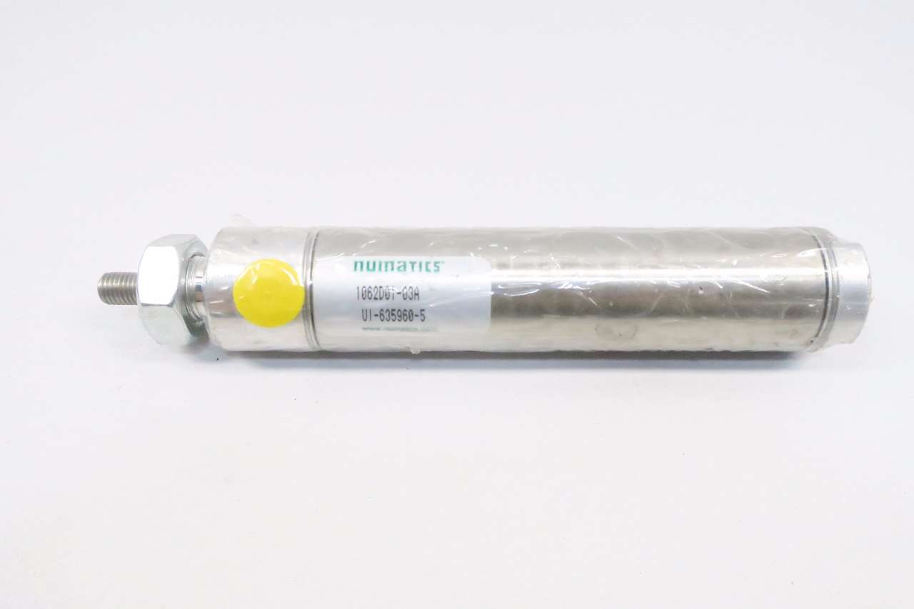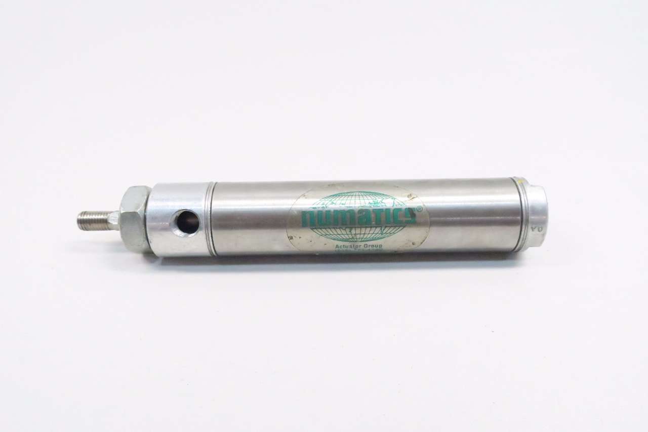 Numatics 1062D01-03A M Series Double Acting Cylinder and Nose Mount, SS Tube, Aluminum Caps, Industrial Automation, Round Pneumatic Cylinder, Silver, 1 1/16" Bore, 3" Stroke