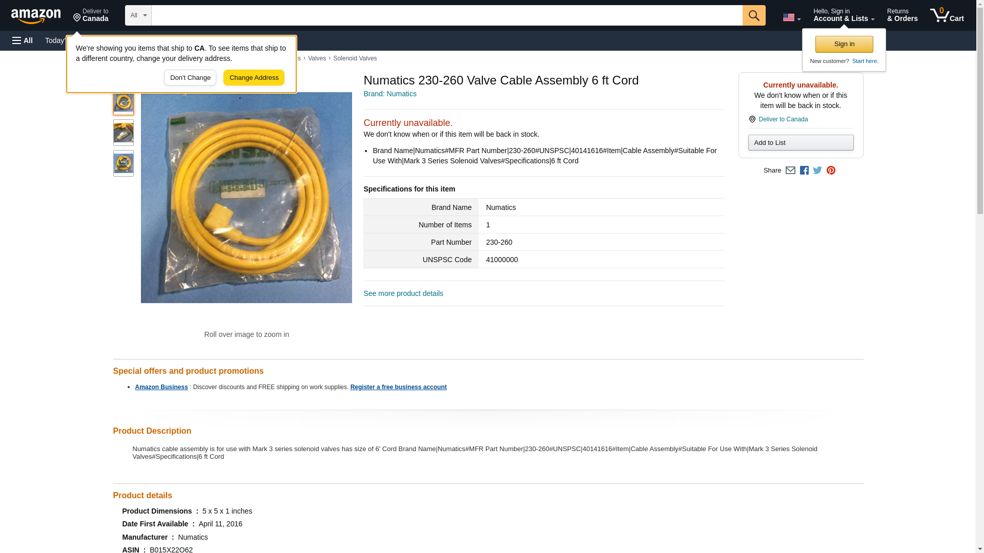 Numatics cable assembly is for use with Mark 3 series solenoid valves has size of 6' Cord