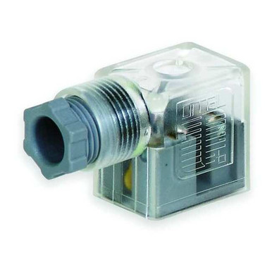 Solenoid Coil Connector, Indicating Light Yes, Voltage 220V, Lead Type Plug, Standards NEMA 4, For Use With L Series and Mark 3, Strain Relief Yes, Max. Ambient Temp. (F) 180 Degrees F, Design DIN 43650 Form B, Height (In.) 1.1875 in, Length (In.) 1 9/16 in, Width (In.) 0.81 in, Lead Length (In.) -, Type 22mm DIN, Solenoid Coil Connector