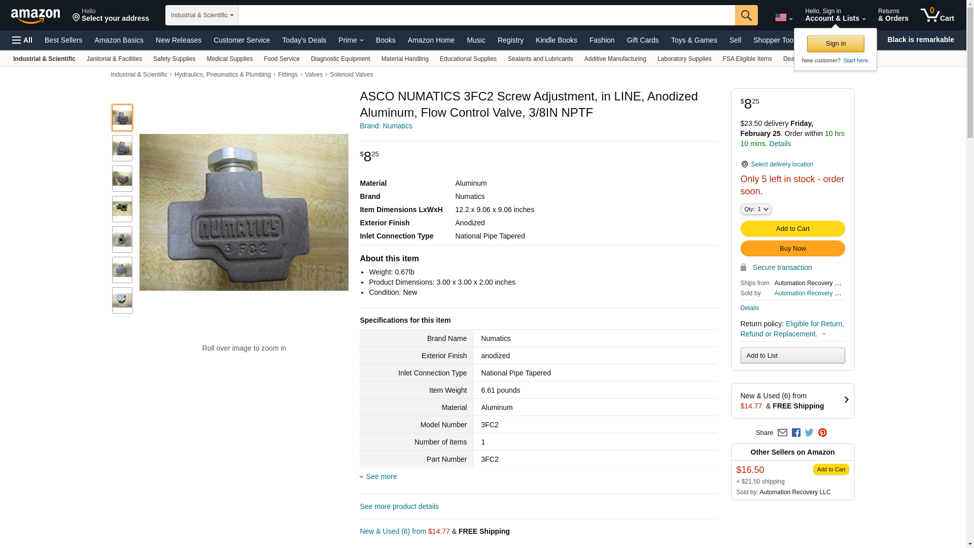 ASCO NUMATICS 3FC2 Screw Adjustment, in LINE, Anodized Aluminum, Flow Control Valve, 3/8IN NPTF