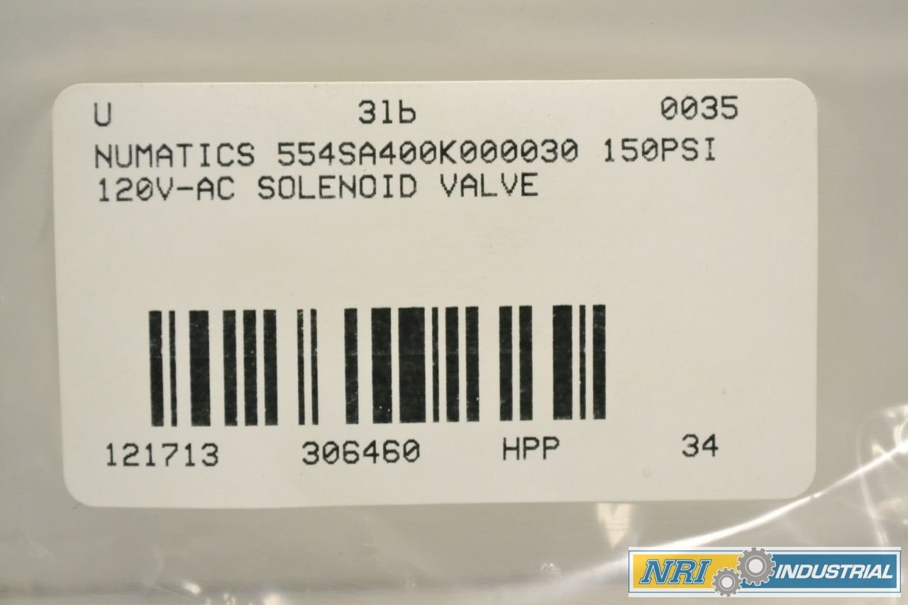 As an Amazon Associate, we earn from qualifying purchases. NUMATICS 554SA400K000030 150PSI 110-120V-AC SOLENOID VALVE B306460 Numatics . B00YBPAKIM Gallery Attributes Brand name, Manufacturer name, ManufacturerNumatics dataSourceamazonScraper moq, multiple, tierMinQty11 qtyInStock0 SKUB00YBPAKIM snippetNUMATICS 554SA400K000030 150PSI 110-120V-AC SOLENOID VALVE B306460 Distributor offers SellerSKUMOQIn stockMultiplePrices AmazonB00YBPAKIM11