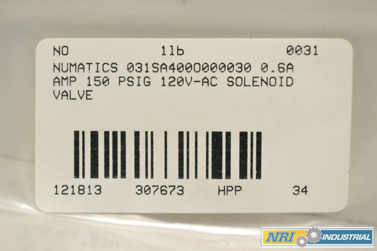 | snippet | NEW NUMATICS 031SA400O000030 0.6A AMP 150 PSIG 120V-AC SOLENOID VALVE B307673 |