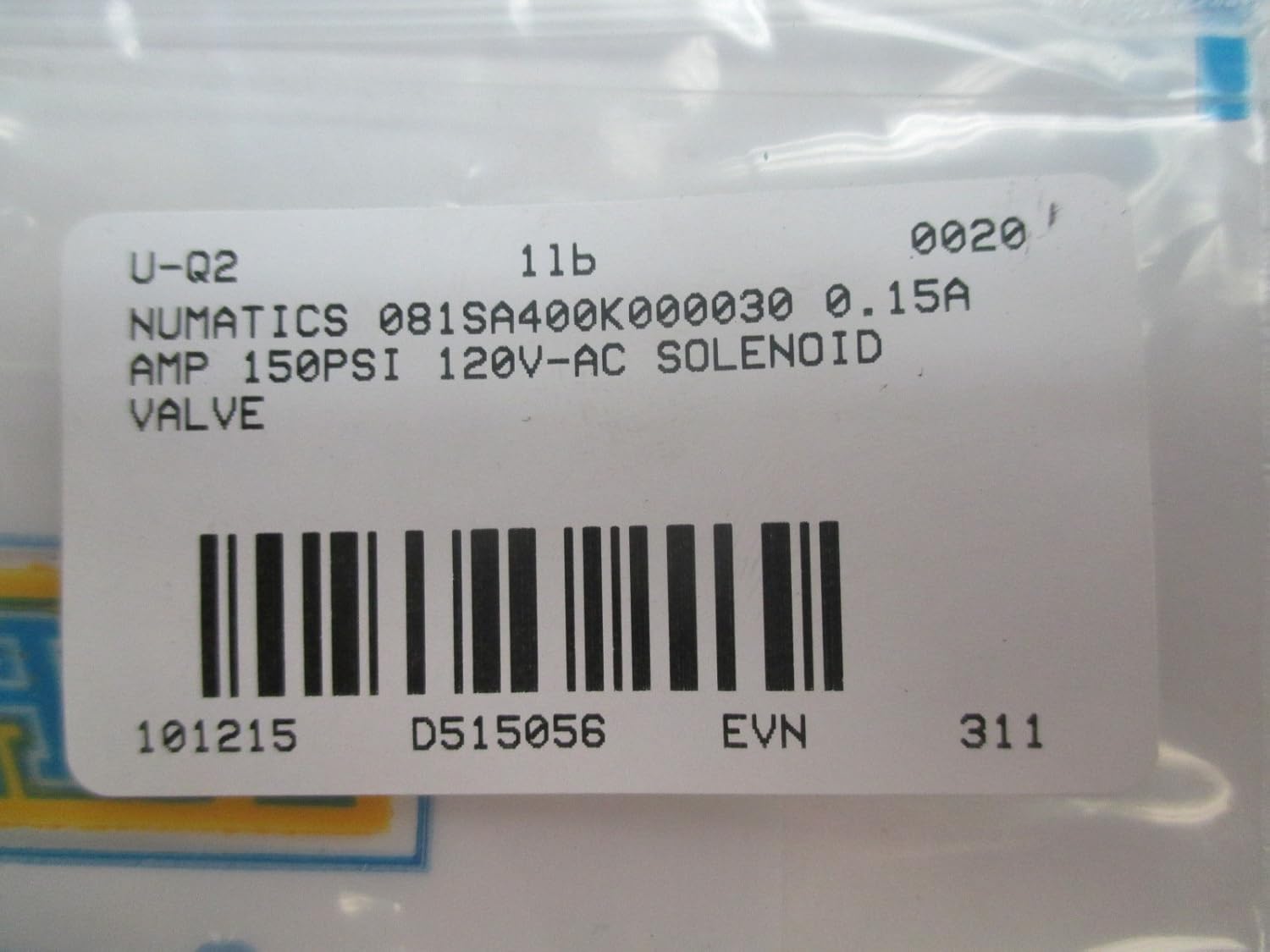 | snippet | NUMATICS 081SA400K000030 0.15A AMP 150PSI 120V-AC SOLENOID VALVE D515056 |