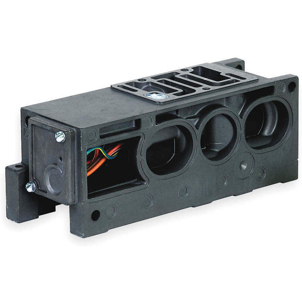 Manifold Block Full Size, For Use With Mark 55 Series Valves, Number of Valve Stations 1, Valve Port Size 3/4 in, Cv 5, Solenoid Valve Manifold, Mark 55 Series, Length (In.) 9 3/8 in, Width (In.) 3 in, Height (In.) 3 1/2 in, Includes Assembly Hardware & Gasket