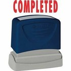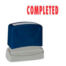 Title stamper offers a specially designed system that evenly disperses instant-drying ink. Protective end piece ensures clean impressions. Title stamper stamps COMPLETED. Impression size is 1-3/4" x 5/8".