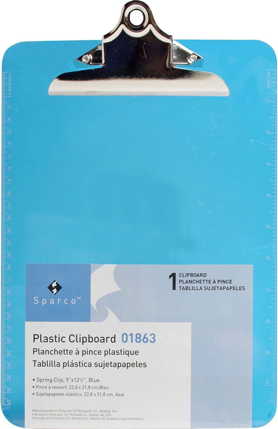 As an Amazon Associate, we earn from qualifying purchases. Sparco Products 01863 Clipboard, Plastic, 9"x12", Blue Sparco . B0096XSCAW Gallery Attributes Brand name, Manufacturer name, Manufacturer, Attribute00, Attribute01Sparco Attribute02Blue Attribute03Plastic Attribute04SPR01863 Attribute05, SKUB0096XSCAW AttributeKey00Manufacturer AttributeKey01Brand Name AttributeKey02Color AttributeKey03Material Type AttributeKey04Manufacturer Part Number AttributeKey05ASIN DimensionUnitinches Extra Product NameSparco Products 01863 Clipboard, Plastic, 9"x12", Blue dataSourceamazonScraper height12.5 length1.06 moq, multiple, tierMinQty11 qtyInStock0 snippetTransparent Plastic Clipboard, 9"x12", Blue width9 Distributor offers SellerSKUMOQIn stockMultiplePrices AmazonB0096XSCAW11