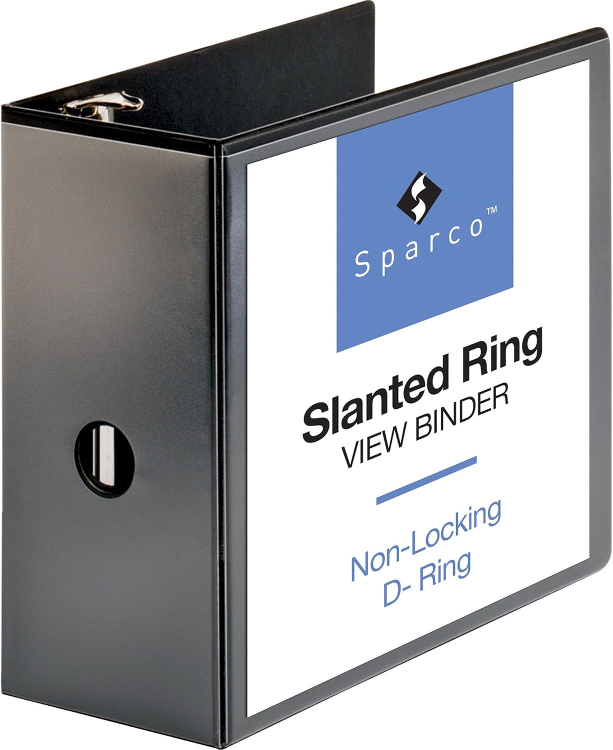 Sparco 09900 Slant Ring View Binder, w/Spine Hole, 5-Inch Cap, 11-Inch x8-1/2-Inch, BK