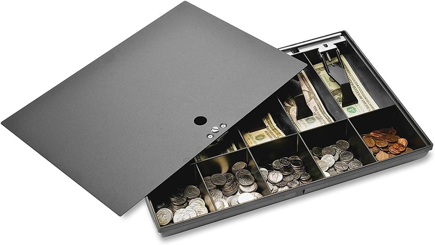 Money tray with locking cover features five compartments for bills/checks and five compartments for coins to safeguard your money