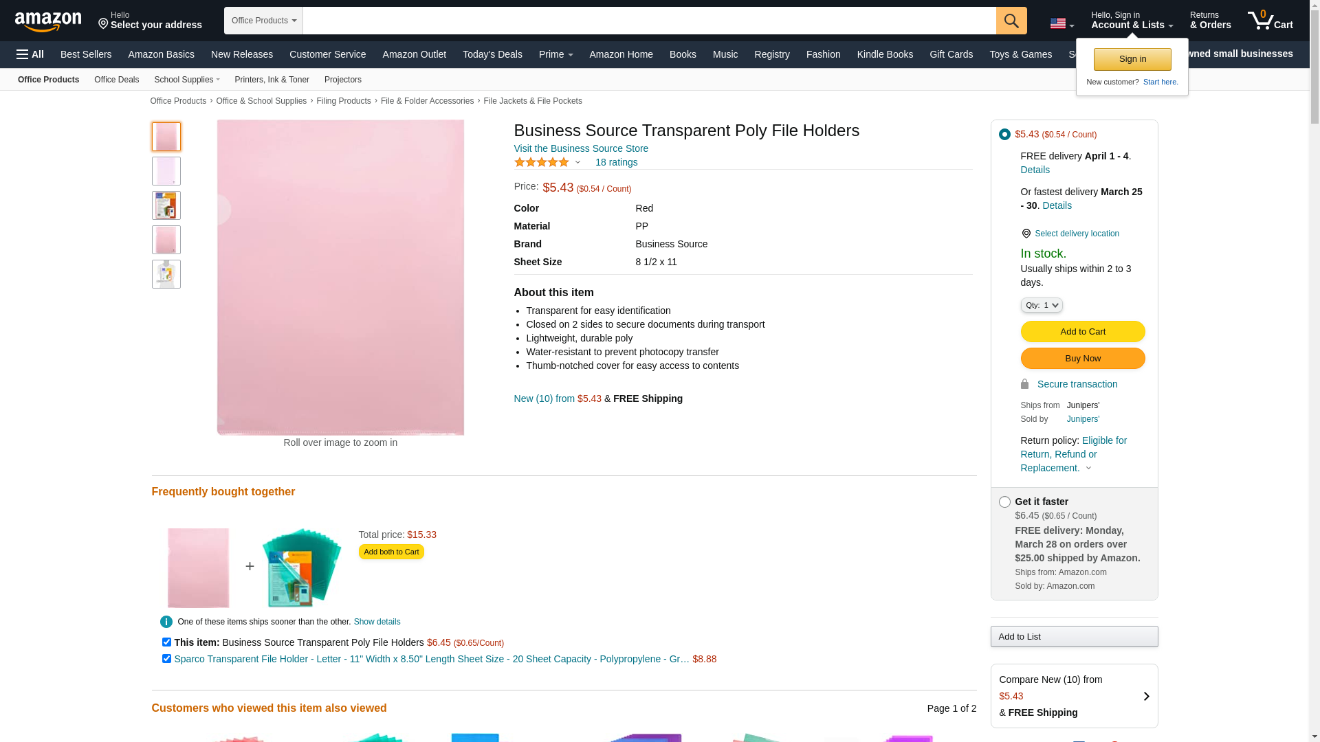 Sparco Transparent File Holders, Water Resistant, 11 x 8-1/2 Inches, 10-Pack, RD (SPR00607). File holders lock in doc...
