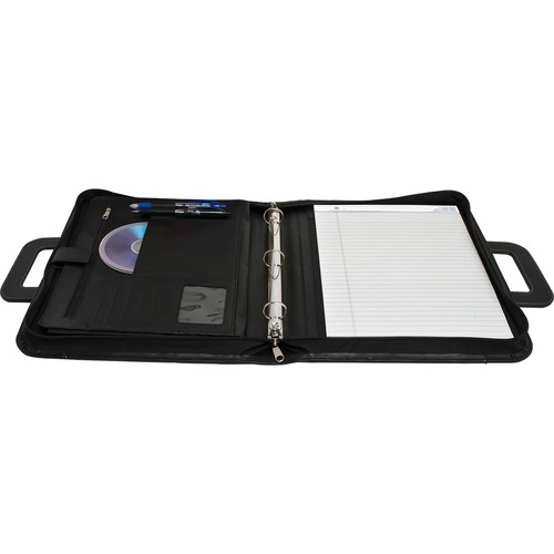 - Zippered closure secures important documents inside; 3-ring binder