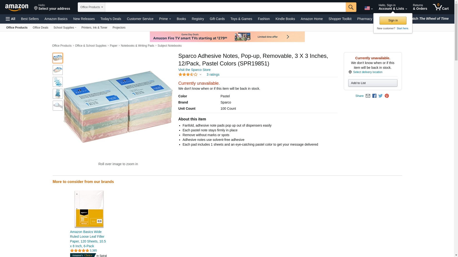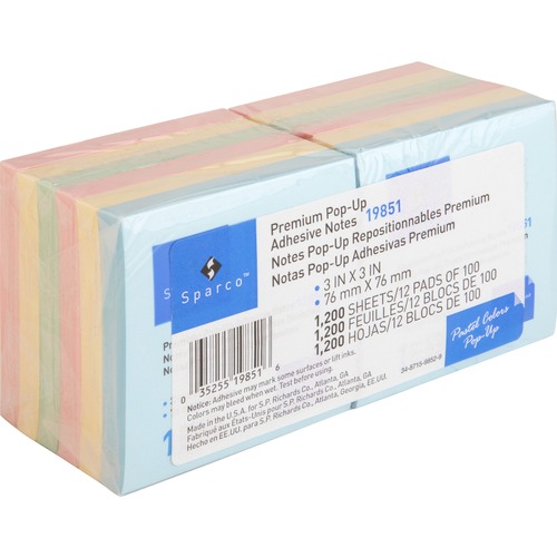 - Sparco Adhesive Notes,Pop-up,Removable,3"x3",12/PK,Pastel Colors