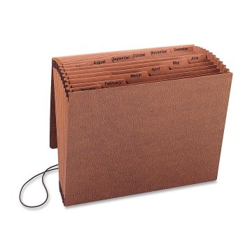 - Accordion File,w/Flap,Jan-Dec,12 Pocket,Letter,12"x10",Brown