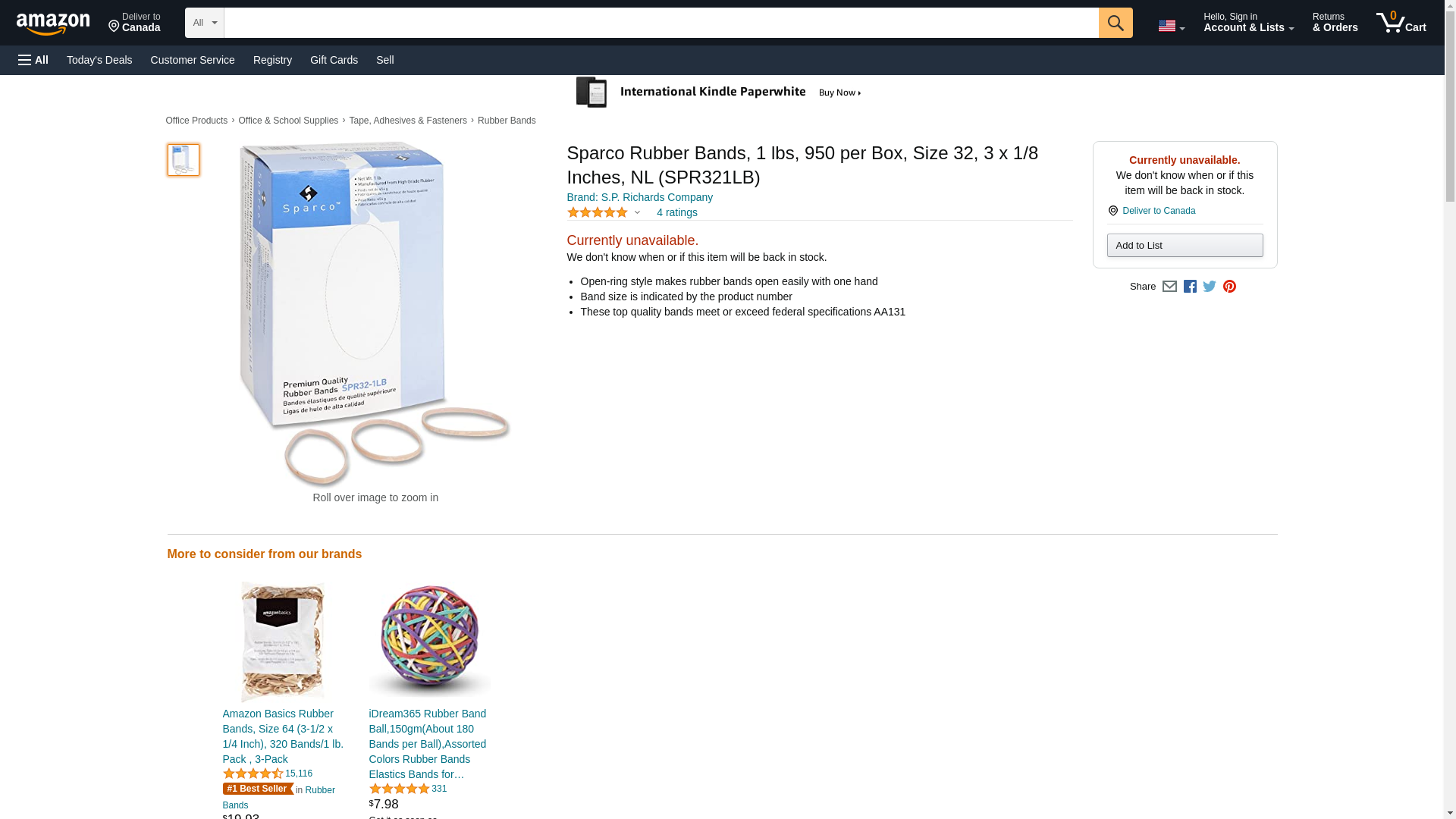 SPR321LB Size: 32 Features: -Natural. -Open-ring style makes rubber bands open easily with one hand. -Sustainable. Box Size: -1 Lb. Size: -117B/14/18/19/32/10/30/31/33/8/105/107/16/62/64/84. Color(s): -Natural. Country of Manufacture: -United States. Dimensions: Overall Product Weight: -1.1 lbs. Size 10 - Overall Length: -1.25". Size 10 - Overall Width - Side to Side: -0.06". Size 105 - Overall Length: -5". Size 105 - Overall Width - Side to Side: -0.625". Size 107 - Overall Length: -7". Size 107 - Overall Width - Side to Side: -0.625". Size 117B - Overall Length: -7". Size 117B - Overall Width - Side to Side: -0.125".