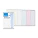 Stiff-back notebook features wire coil ends that are locked for safety and longevity. Each sheet is ruled and has a faint center line.