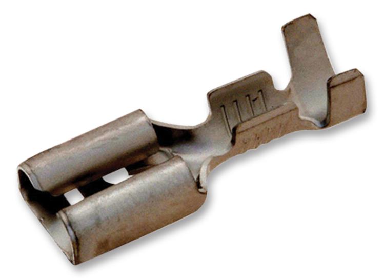 | Feature | <b>Price For:</b> Pack of 100<b>Order Unit:</b> Each\xa01 <b>Connector Type:</b>: Female Disconnect <b>Contact Material:</b>: Brass <b>Contact Plating:</b>: Tin <b>Insulator Color:</b>: - <b>Insulator Material:</b>: Uninsulated <b>Product Range:</b>: FASTON 250 Series <b>SVHC:</b>: No SVHC (16-Jun-2014) <b>Series:</b>: FASTIN-FASTON <b>Stud/Tab Size:</b>: 0.25" x 0.032" <b>Tab Size - Imperial:</b>: 0.25" x 0.032" |