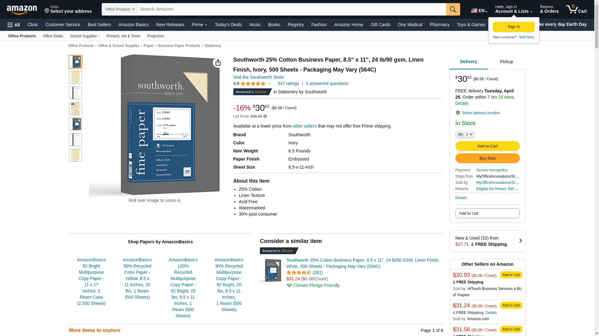 Life Is Noteworthy. Give reports, stationery, and other official documents an upscale look with this Southworth Business paper.Create your own noteworthy custom letterheads or give important paperwork an executive-level appearance with this 25 percent cotton fine paper. The neutral color hue helps colored and monochrome ink stand out, while the linen finish gives every printout a unique texture. This Southworth business paper features a 24-pound paper weight, making it a smart option for frequently handled documents. Fine paper is ideal for proposals, presentations, reports Paper size: 8.5"W x 11"L Printer compatibility: laser, inkjet, copier Acid- and lignin-free Certified by the Forest Stewardship Council (FSC) Ivory linen business paper comes in a box of 500. Forest Stewardship Council (FSC) certified - made from wood/paper that comes from forests managed to rigorous environmental and social standards, supported by the world's leading conservation organizations. Leadership forestry - from forests or sourcing programs that meet specific environmental standards, helping you support practices that better protect forests and the environment. Contains Recycled Content - See Specs for Details