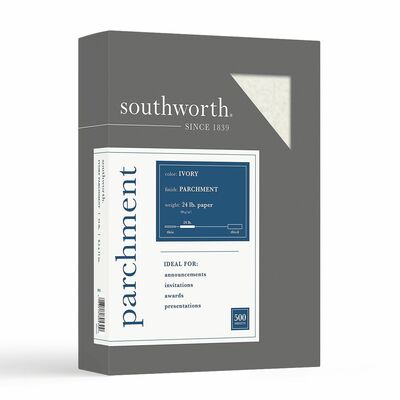 Southworth Fine Parchment Paper, 24Lb, 8-1/2"x11", 500/BX, Ivory