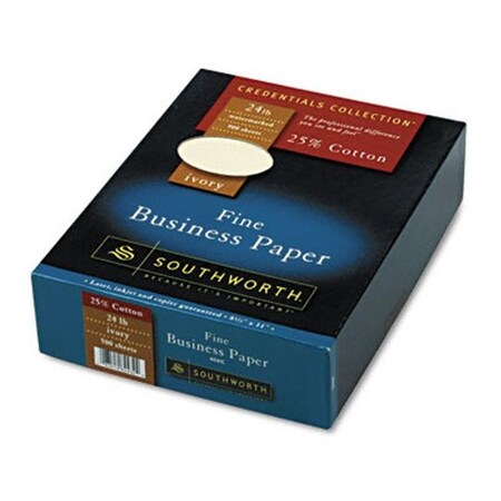 Southworth 25% Cotton Business Paper, Ivory, 24 lbs., Wove, 8-1/2 x 11, 500/Box, FSC