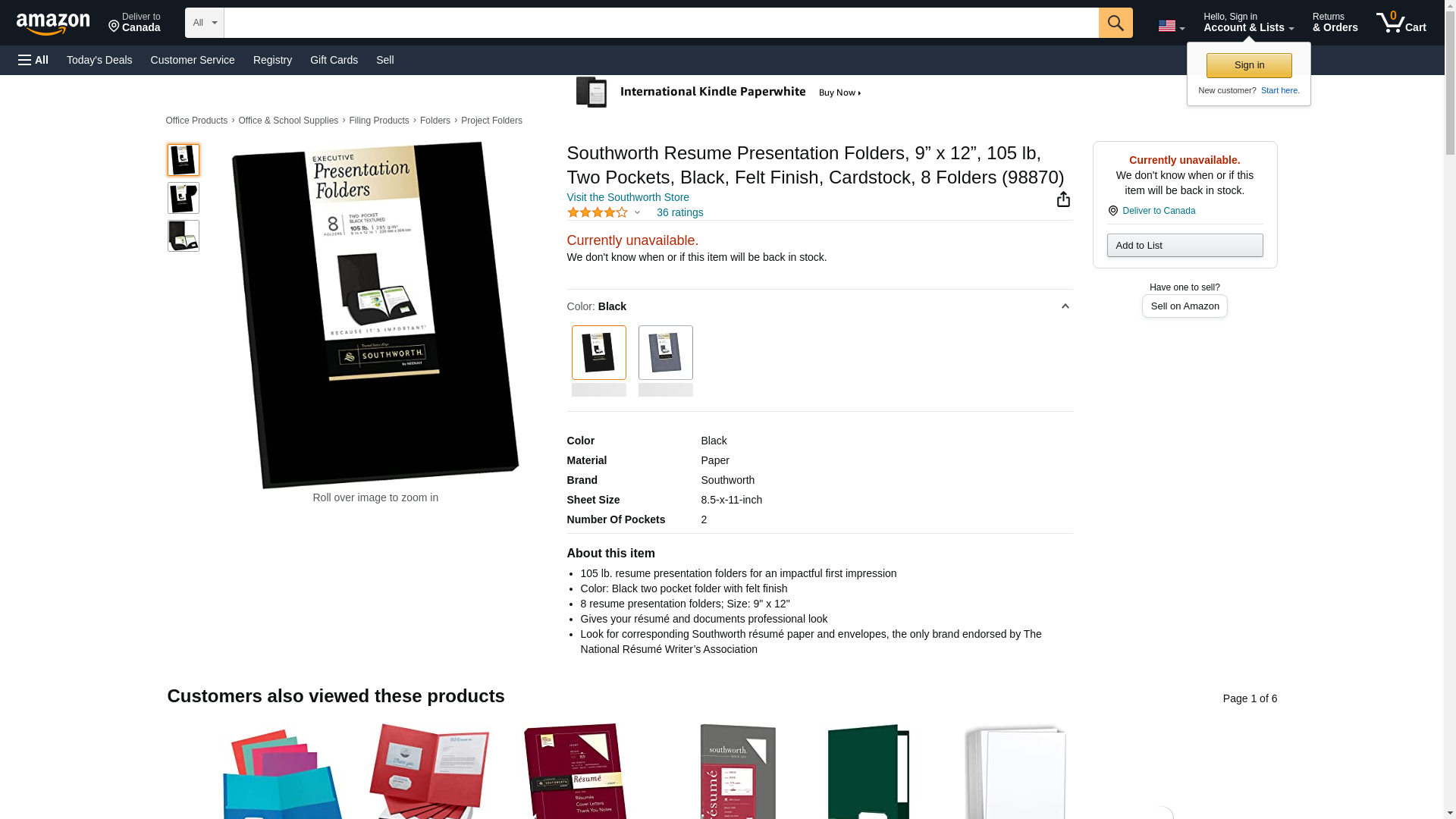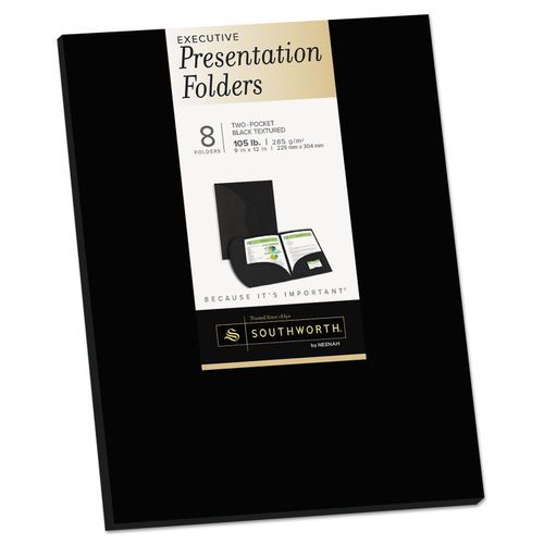 Southworth Resume Presentation Folders, 9” x 12”, 105 lb., Two Pockets, Black, Felt Finish, Cardstock, 8 Folders (98870)