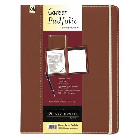 Southworth Brown Leatherette Career Padfolio, 10.25” x 13”, With 50ct Writing Pad - Packaging May Vary (99672)