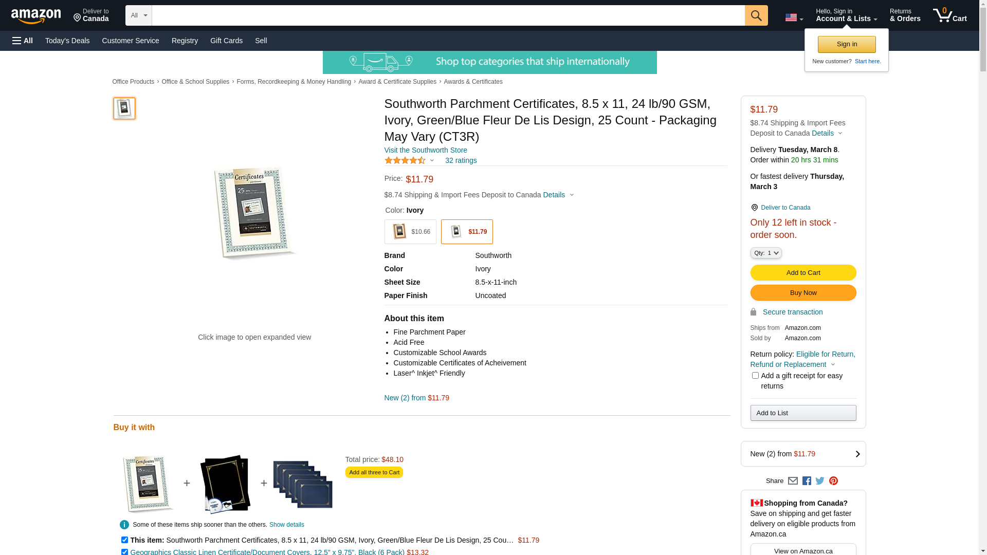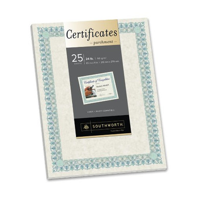 Southworth CT3R Parchment Certificates Ivory w/Green & Blue Border 24 lbs. 8-1/2 x 11 25/PK