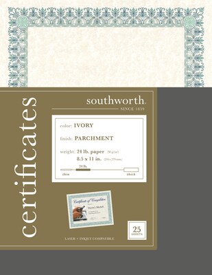 Southworth Parchment Certificates AWARD,PREPRINTED CER,IY 74412 (Pack of10)