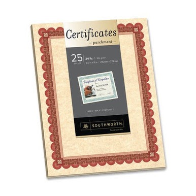 Southworth Parchment Certificates, Copper w/Red & Brown Border, 24 lbs, 8-1/2 x 11, 25/Pack