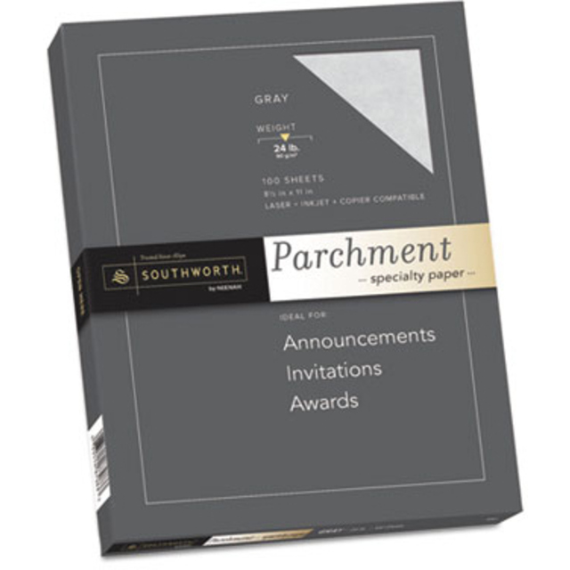 Parchment Specialty Paper, 24 lb Bond Weight, 8.5 x 11, Gray, 100/PackAcid-free to resist yellowing and disintegration.