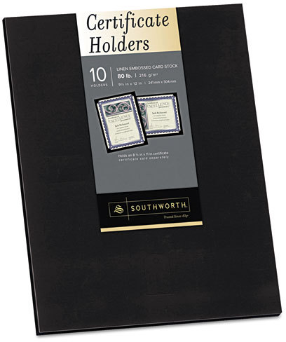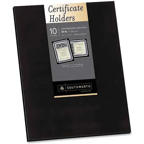 - Southworth PF18 Certificate Holder, Black, Linen, 105 lbs., 12 x 9-1/2, 10/Pack