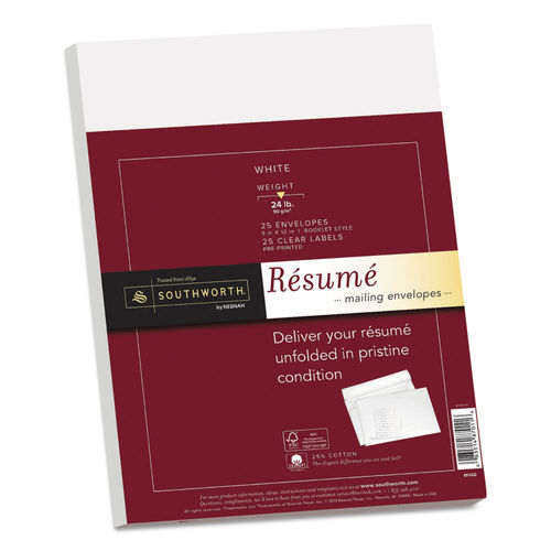 Southworth Resume Envelopes (9x12 Inches) and Labels, 25% Cotton, 24 lb, White, 25 Count Envelopes and 25 Count Labels (RF#6Q)