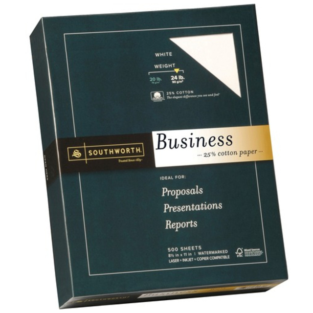 Southworth 25% Cotton Business Paper 24 lbs. 8-1/2 x 11 White 500/Box